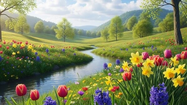 Čerstvé květiny z horské zahrady, otevřená okna s vůní probouzející se přírody.