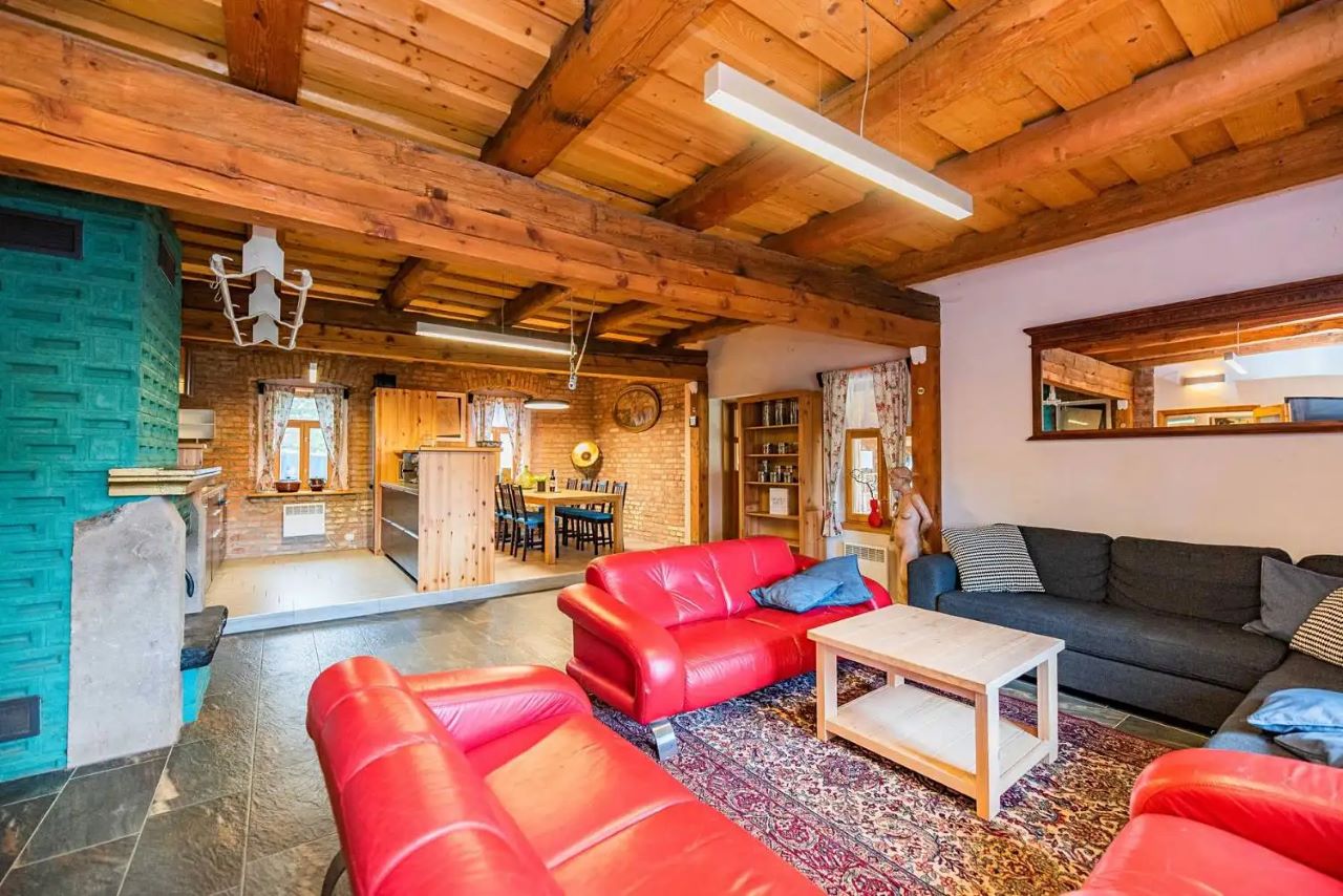 Srdce naší chaty s tradičními kachlovými kamny, pohodlnými sedačkami a knihovnou plnou knih o horách a místní historii. Ideální místo pro večerní posezení u ohně.